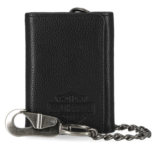 HARLEY-DAVIDSON® MENS BAR & SHIELD CORE PEBBLE CHAIN TRI-FOLD WALLET