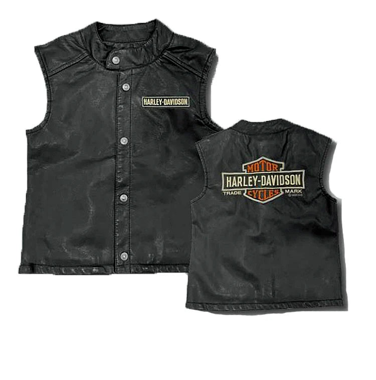 - And, the authentic vibe of the H-D® Laundered Faux Leather Vest gives your future rider a legit start on his place in a legacy