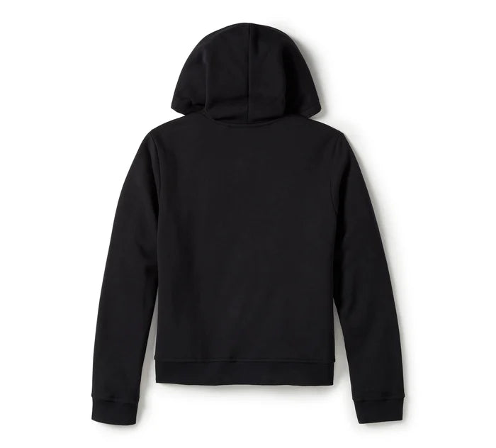 Enhanced style, comfort, and versatility all converge on this latest Miss Enthusiast 3-in-1 Textile Jacket. The outerwear layer is cut from heavyweight cotton/nylon oxford and now features zip-off sleeves to wear as a vest, plus an extended snap-tab collar. We’ve also upgraded the hoodie with an added zipper that secures to the jacket/vest and a drawcord that tucks into the hood so it won’t flap around under your riding gear. Wear the jacket alone, the vest alone, the hoodie alone, or combine them together—either way it’s a must-have for rides, road trips, and rallies. It’s all classically embroidered with our graphics for an iconic Harley-Davidson look. Snag yours now while supplies last.