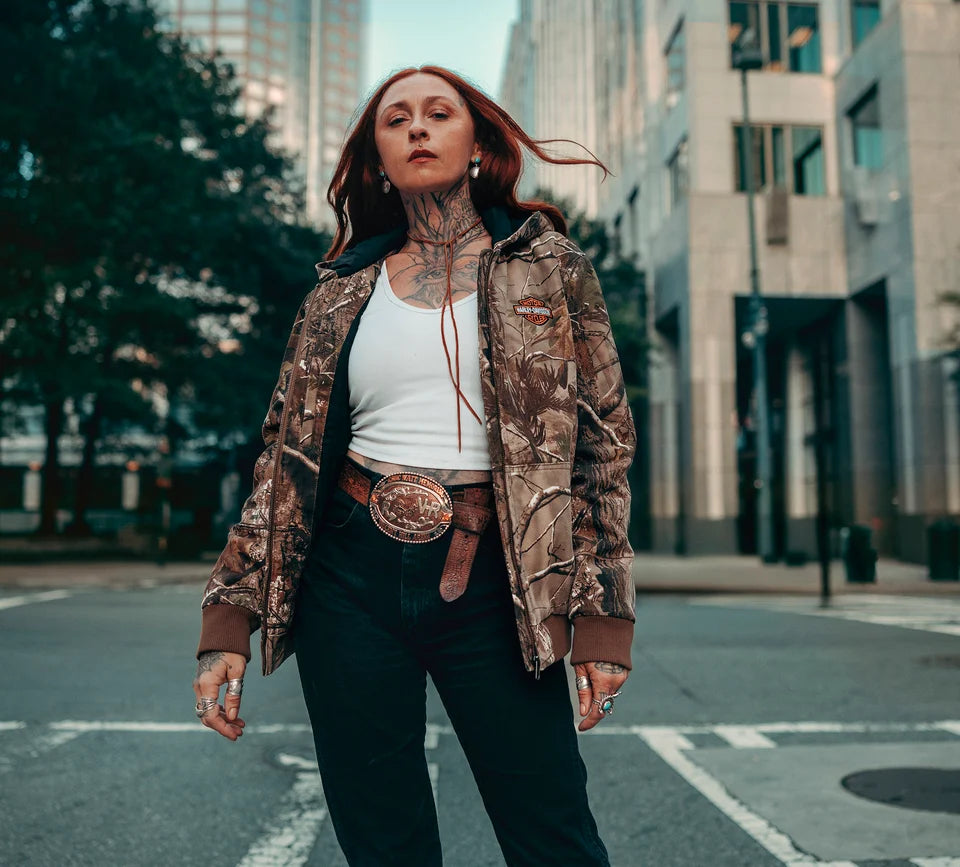 Rugged, outdoor-loving style is here on our H-D® Realtree® APG Twill Jacket. Built sturdy from heavyweight cotton canvas, this women’s outerwear has polyfill quilted insulation for added warmth, and is washed for softness and a worn-in feel. It features roomy hand pockets plus an inside zip pocket for securing essentials, a quilted hooded, and rib-knit trim for enhanced stretch. The authentic Realtree APG pattern merges hardwoods, pine thickets, prairies, and river bottoms with other outdoor environments. It’s an ideal backdrop for our legendary Harley-Davidson graphics gracing the front and going all-in on back. Part of the H-D Realtree APG assortment—special-edition apparel that merges iconic camo patterns with iconic motorcycle culture.