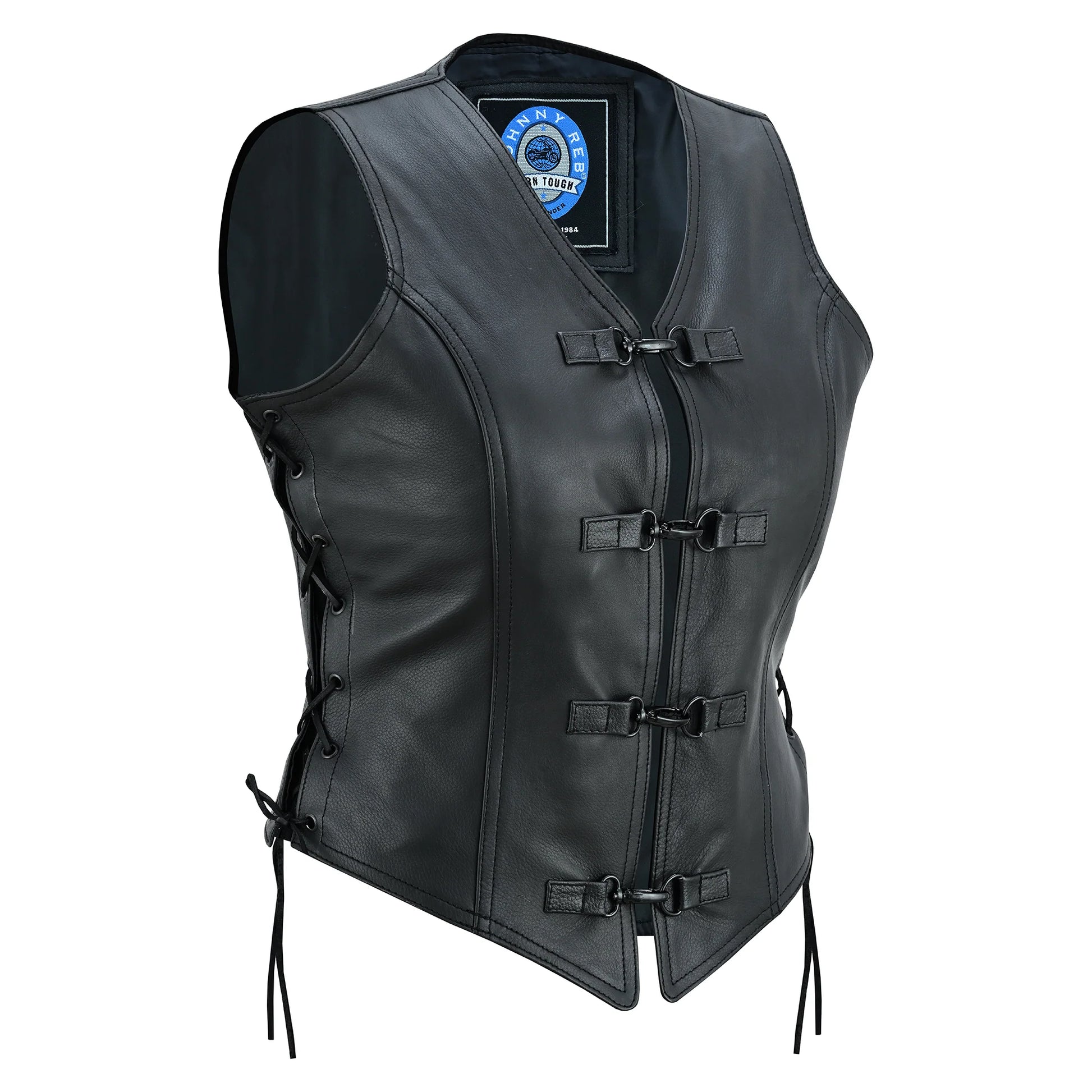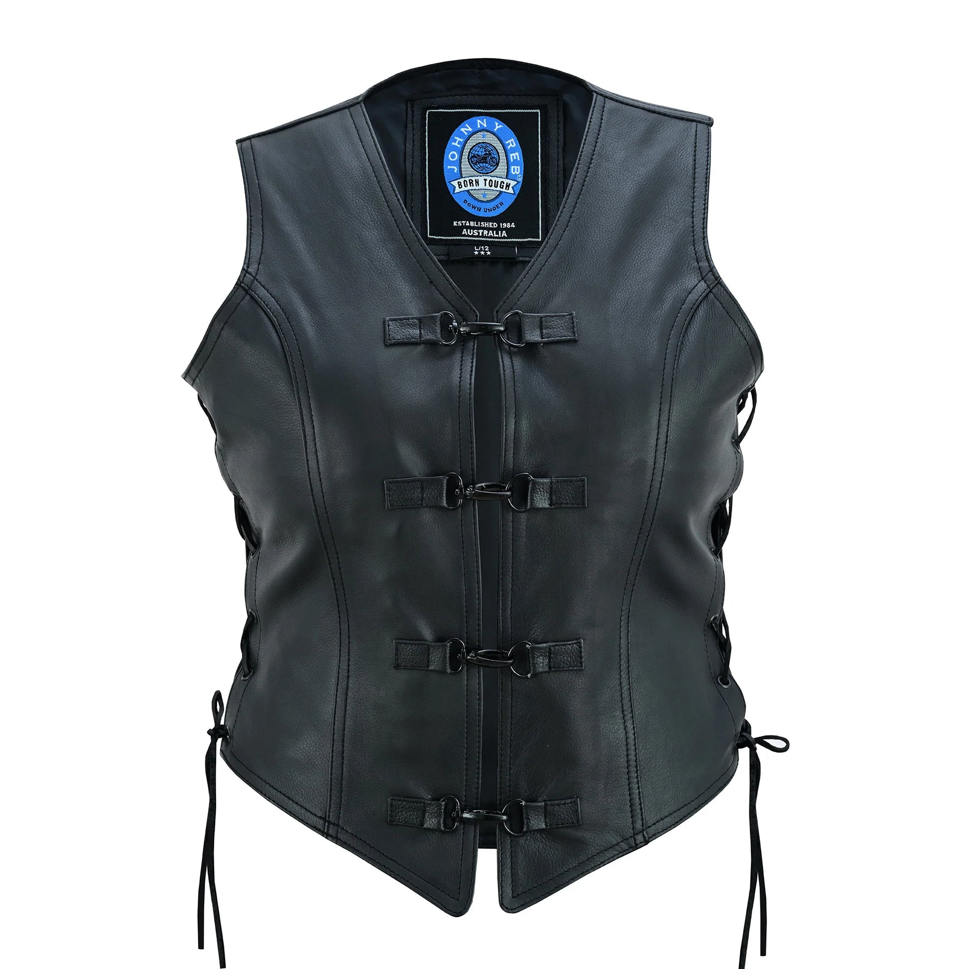 Our Women's Sapphire vest in triple black! Black leather, black lacing & black hardware. A tough & sleek design, with a feminine cut & loads of room to add your own patches.